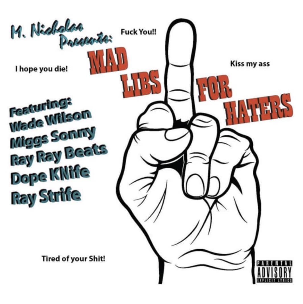 M. Nicholas presents his latest project titled 'Mad Libs For Haters.' The project features an elite selection of artists including Dope Knife, Miggs Sonny, Raymond Strife, RayRayBeats, Wade Wilson, and Nicholas himself. The 6-track indie Hip Hop album hits heavy and is out now on all streaming platforms.
